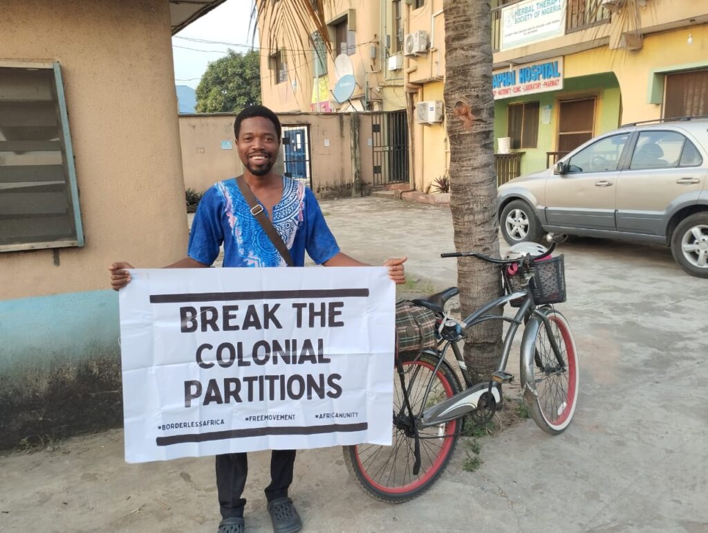 Gideon AdeyeniGideon Adeyeni, panafricaniste, militant et ancien membre du collectif de coordination du mouvement Africans Rising, est parti à vélo de Lagos, au Nigeria, pour rejoindre Acrra, au Ghana, en passant par la République du Bénin et le Togo, du 23 au 28 décembre 2023. Il a partagé son voyage épique lors d’un webinaire de discussion organisé par Africans Rising.